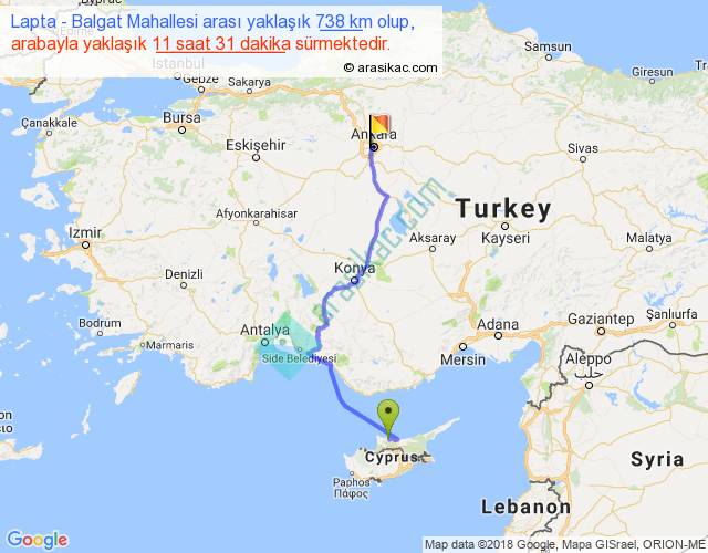 Lapta - Balgat Mahallesi arası yaklaşık olarak 90 km/h ile yukarıda belirtilen sürede olup, iki yerin kuş uçuşu uzaklığı (mesafesi) 506'dir. Eğer belirtilen yerler arasında uçak seferi var ise bu süre uçakla 46 dakika'ya kadar düşebilir. Yolculuk otobüsle 14 saat 58 dakika sürmektedir.
