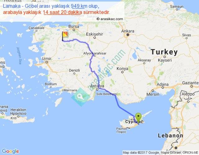 Eğer Larnaka Göbel arası ne kadar yakar (benzin/mazot) diyorsanız, kilometrede 3 ₺ yakan bir aracınız var ise 2847, km'de 4 ₺ yakan bir aracınız var ise 3796, km'de 5 ₺ yakan bir aracınız var ise 4745 ile bu yolculuğu tamamlayabilirsiniz.