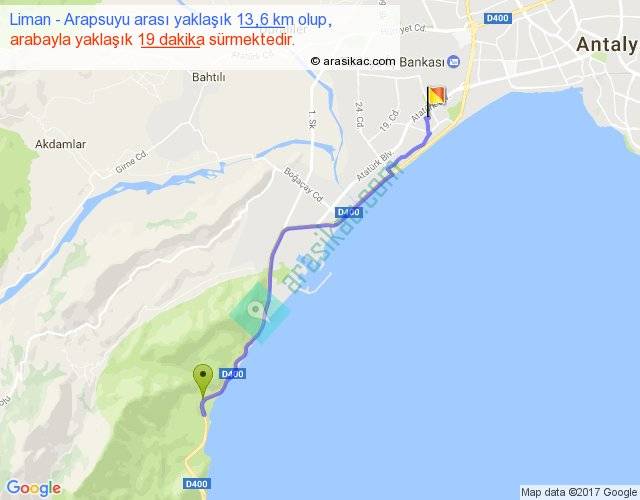 Liman - Arapsuyu arası yaklaşık olarak 90 km/h ile yukarıda belirtilen sürede olup, iki yerin kuş uçuşu uzaklığı (mesafesi) 11'dir. Yolculuk otobüsle 24 dakika sürmektedir.