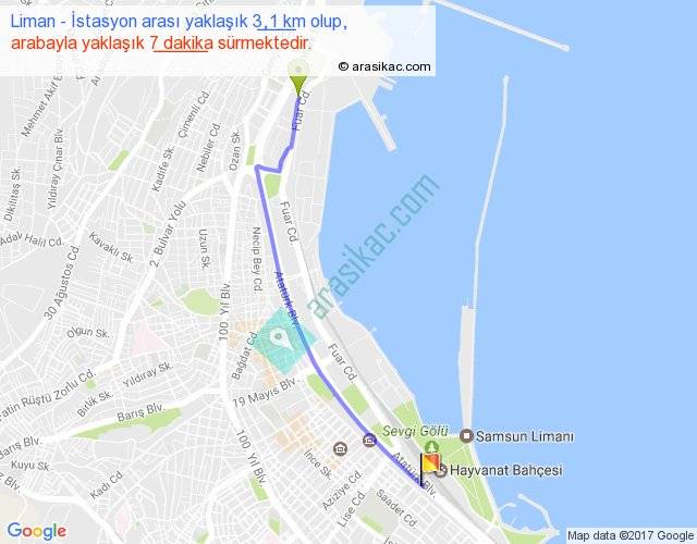 Liman - İstasyon arası yaklaşık olarak 90 km/h ile yukarıda belirtilen sürede olup, iki yerin kuş uçuşu uzaklığı (mesafesi) 3'dir. Yolculuk otobüsle 9 dakika sürmektedir.