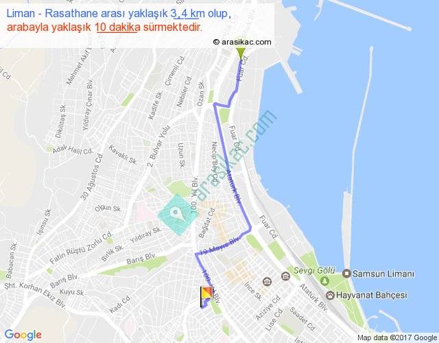 Liman - Rasathane arası yaklaşık olarak 90 km/h ile yukarıda belirtilen sürede olup, iki yerin kuş uçuşu uzaklığı (mesafesi) 3'dir. Yolculuk otobüsle 13 dakika sürmektedir.