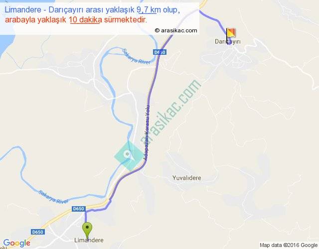 Limandere - Darıçayırı arası yaklaşık olarak 90 km/h ile yukarıda belirtilen sürede olup, iki yerin kuş uçuşu uzaklığı (mesafesi) 7'dir. Yolculuk otobüsle 13 dakika sürmektedir.