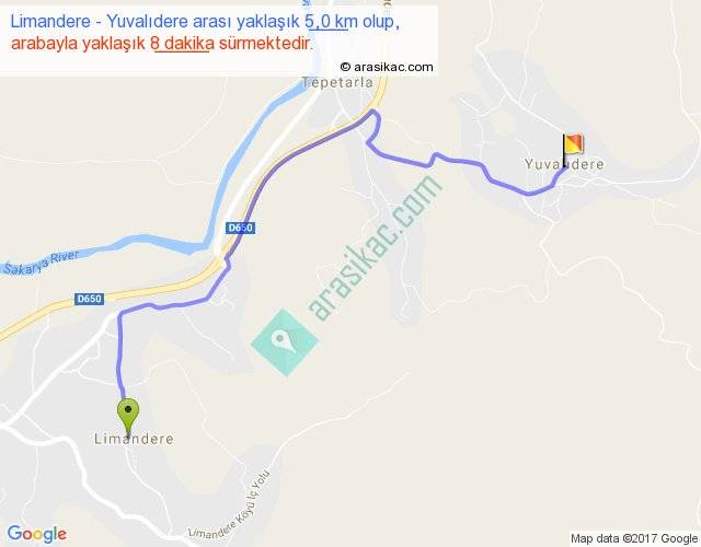 Limandere - Yuvalıdere arası yaklaşık olarak 90 km/h ile yukarıda belirtilen sürede olup, iki yerin kuş uçuşu uzaklığı (mesafesi) 3'dir. Yolculuk otobüsle 10 dakika sürmektedir.