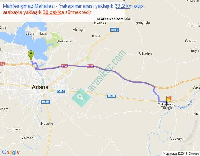Mahfesığmaz Mahallesi - Yakapınar arası yaklaşık olarak 90 km/h ile yukarıda belirtilen sürede olup, iki yerin kuş uçuşu uzaklığı (mesafesi) 28'dir. Yolculuk otobüsle 39 dakika sürmektedir.