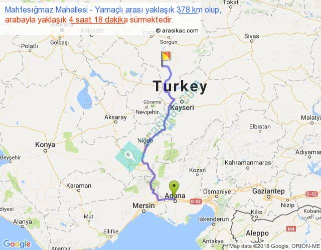 Mahfesığmaz Mahallesi - Yamaçlı arası yaklaşık olarak 90 km/h ile yukarıda belirtilen sürede olup, iki yerin kuş uçuşu uzaklığı (mesafesi) 253'dir. Eğer belirtilen yerler arasında uçak seferi var ise bu süre uçakla 23 dakika'ya kadar düşebilir. Yolculuk otobüsle 5 saat 35 dakika sürmektedir.