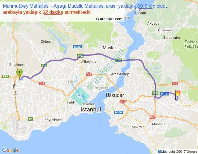 Eğer Mahmutbey Mahallesi Aşağı Dudullu Mahallesi arası ne kadar yakar (benzin/mazot) diyorsanız, kilometrede 3 ₺ yakan bir aracınız var ise 117, km'de 4 ₺ yakan bir aracınız var ise 156, km'de 5 ₺ yakan bir aracınız var ise 195 ile bu yolculuğu tamamlayabilirsiniz.