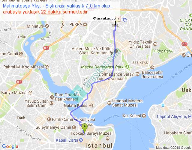 Eğer Mahmutpaşa Ykş. Şişli arası ne kadar yakar (benzin/mazot) diyorsanız, kilometrede 3 ₺ yakan bir aracınız var ise 21, km'de 4 ₺ yakan bir aracınız var ise 28, km'de 5 ₺ yakan bir aracınız var ise 35 ile bu yolculuğu tamamlayabilirsiniz.