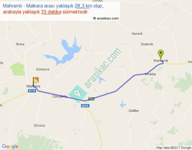 Mahramlı - Malkara arası yaklaşık olarak 90 km/h ile yukarıda belirtilen sürede olup, iki yerin kuş uçuşu uzaklığı (mesafesi) 25'dir. Yolculuk otobüsle 29 dakika sürmektedir.
