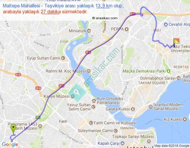 Maltepe Mahallesi - Teşvikiye arası yaklaşık olarak 90 km/h ile yukarıda belirtilen sürede olup, iki yerin kuş uçuşu uzaklığı (mesafesi) 9'dir. Yolculuk otobüsle 35 dakika sürmektedir.