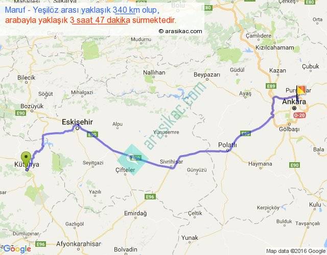 Eğer Maruf Yeşilöz arası ne kadar yakar (benzin/mazot) diyorsanız, kilometrede 3 ₺ yakan bir aracınız var ise 1020, km'de 4 ₺ yakan bir aracınız var ise 1360, km'de 5 ₺ yakan bir aracınız var ise 1700 ile bu yolculuğu tamamlayabilirsiniz.