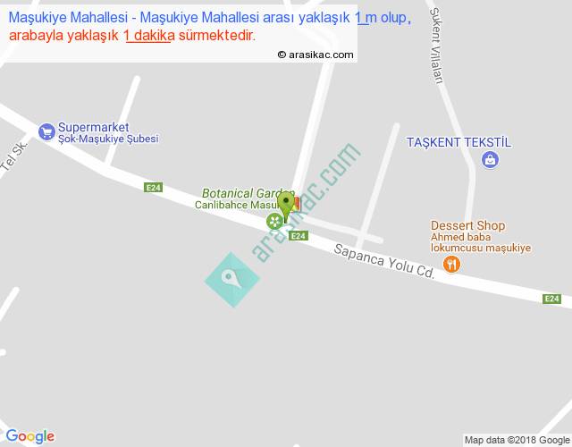 Maşukiye Mahallesi - Maşukiye Mahallesi arası yaklaşık olarak 90 km/h ile yukarıda belirtilen sürede olup, iki yerin kuş uçuşu uzaklığı (mesafesi) NAN'dir. Yolculuk otobüsle 1 dakika sürmektedir.
