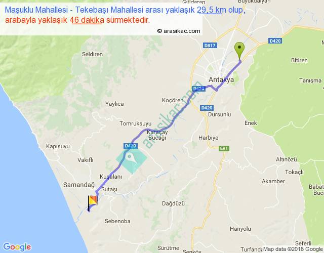 Maşuklu Mahallesi - Tekebaşı Mahallesi arası yaklaşık olarak 90 km/h ile yukarıda belirtilen sürede olup, iki yerin kuş uçuşu uzaklığı (mesafesi) 26'dir. Yolculuk otobüsle 59 dakika sürmektedir.