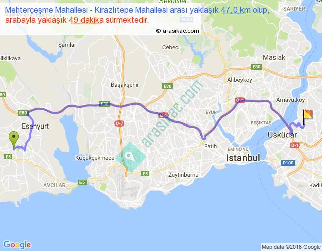 Eğer Mehterçeşme Mahallesi Kirazlıtepe Mahallesi arası ne kadar yakar (benzin/mazot) diyorsanız, kilometrede 3 ₺ yakan bir aracınız var ise 141, km'de 4 ₺ yakan bir aracınız var ise 188, km'de 5 ₺ yakan bir aracınız var ise 235 ile bu yolculuğu tamamlayabilirsiniz.