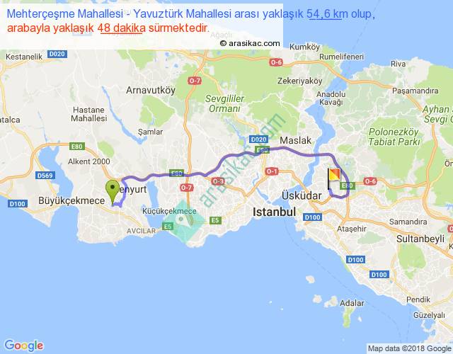 Eğer Mehterçeşme Mahallesi Yavuztürk Mahallesi arası ne kadar yakar (benzin/mazot) diyorsanız, kilometrede 3 ₺ yakan bir aracınız var ise 162, km'de 4 ₺ yakan bir aracınız var ise 216, km'de 5 ₺ yakan bir aracınız var ise 270 ile bu yolculuğu tamamlayabilirsiniz.