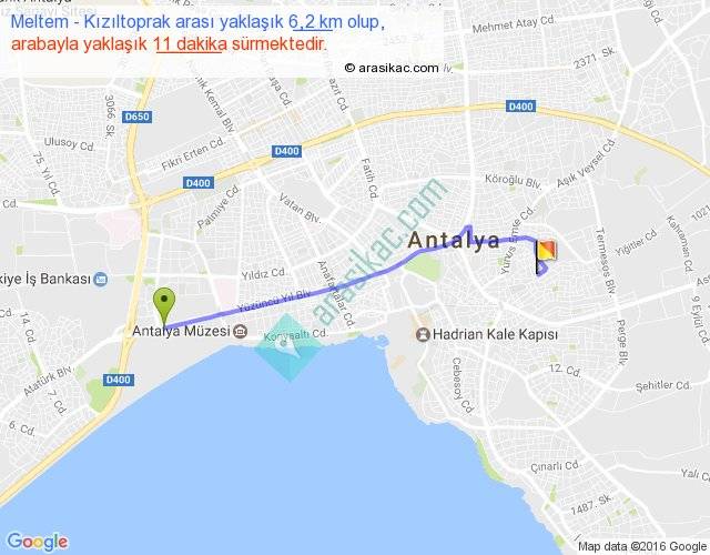 Meltem - Kızıltoprak arası yaklaşık olarak 90 km/h ile yukarıda belirtilen sürede olup, iki yerin kuş uçuşu uzaklığı (mesafesi) 5'dir. Yolculuk otobüsle 14 dakika sürmektedir.