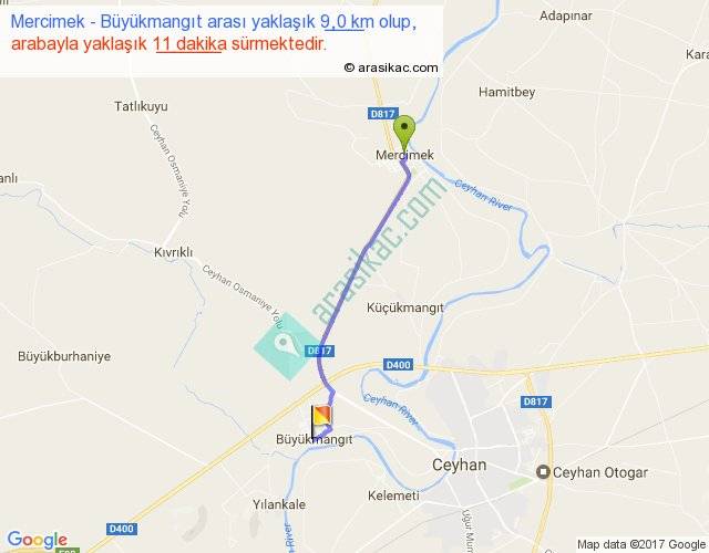Mercimek - Büyükmangıt arası yaklaşık olarak 90 km/h ile yukarıda belirtilen sürede olup, iki yerin kuş uçuşu uzaklığı (mesafesi) 8'dir. Yolculuk otobüsle 14 dakika sürmektedir.