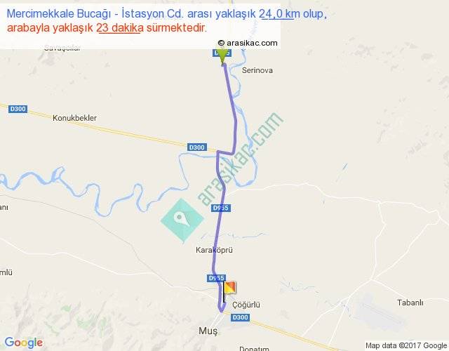 Mercimekkale Bucağı - İstasyon Cd. arası yaklaşık olarak 90 km/h ile yukarıda belirtilen sürede olup, iki yerin kuş uçuşu uzaklığı (mesafesi) 20'dir. Yolculuk otobüsle 29 dakika sürmektedir.