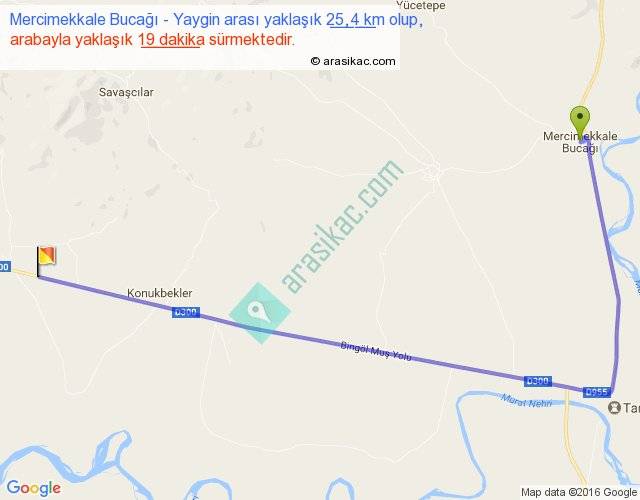 Mercimekkale Bucağı - Yaygin arası yaklaşık olarak 90 km/h ile yukarıda belirtilen sürede olup, iki yerin kuş uçuşu uzaklığı (mesafesi) 16'dir. Yolculuk otobüsle 24 dakika sürmektedir.