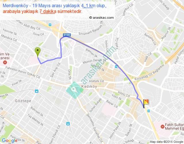 Eğer Merdivenköy 19 Mayıs arası ne kadar yakar (benzin/mazot) diyorsanız, kilometrede 3 ₺ yakan bir aracınız var ise 12, km'de 4 ₺ yakan bir aracınız var ise 16, km'de 5 ₺ yakan bir aracınız var ise 20 ile bu yolculuğu tamamlayabilirsiniz.