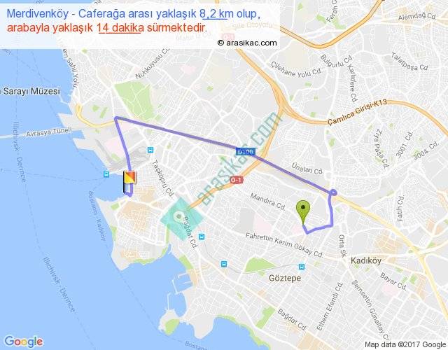 Eğer Merdivenköy Caferağa arası ne kadar yakar (benzin/mazot) diyorsanız, kilometrede 3 ₺ yakan bir aracınız var ise 24, km'de 4 ₺ yakan bir aracınız var ise 32, km'de 5 ₺ yakan bir aracınız var ise 40 ile bu yolculuğu tamamlayabilirsiniz.