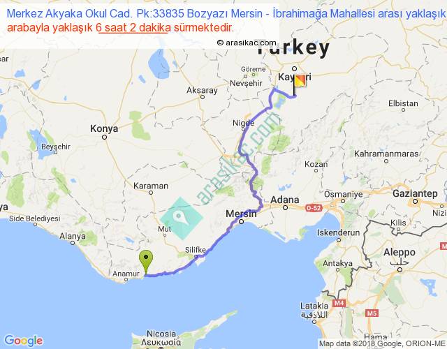 Merkez Akyaka Okul Cad. Pk:33835 Bozyazı Mersin - İbrahimağa Mahallesi arası detaylı bilgi