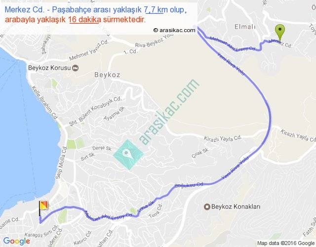 Merkez Cd. - Paşabahçe arası yaklaşık olarak 90 km/h ile yukarıda belirtilen sürede olup, iki yerin kuş uçuşu uzaklığı (mesafesi) 4'dir. Yolculuk otobüsle 20 dakika sürmektedir.
