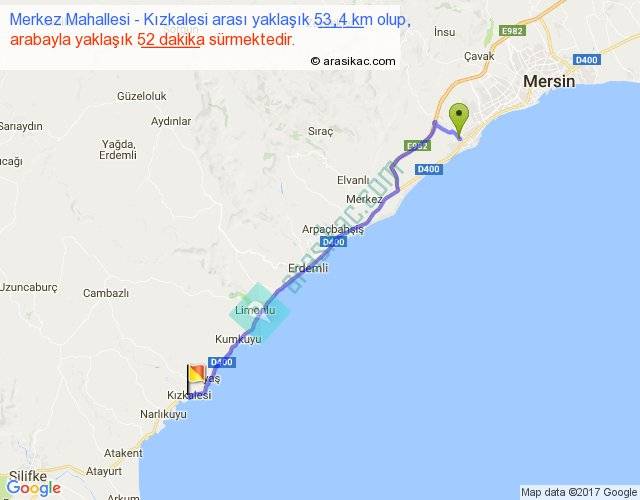 Eğer Merkez Mahallesi Kızkalesi arası ne kadar yakar (benzin/mazot) diyorsanız, kilometrede 3 ₺ yakan bir aracınız var ise 159, km'de 4 ₺ yakan bir aracınız var ise 212, km'de 5 ₺ yakan bir aracınız var ise 265 ile bu yolculuğu tamamlayabilirsiniz.