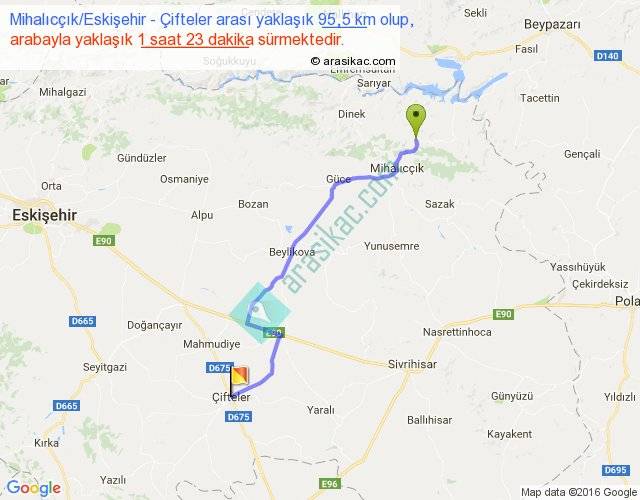 Mihalıcçık Eskişehir - Çifteler arası yaklaşık olarak 90 km/h ile yukarıda belirtilen sürede olup, iki yerin kuş uçuşu uzaklığı (mesafesi) 74'dir. Yolculuk otobüsle 1 saat 47 dakika sürmektedir.