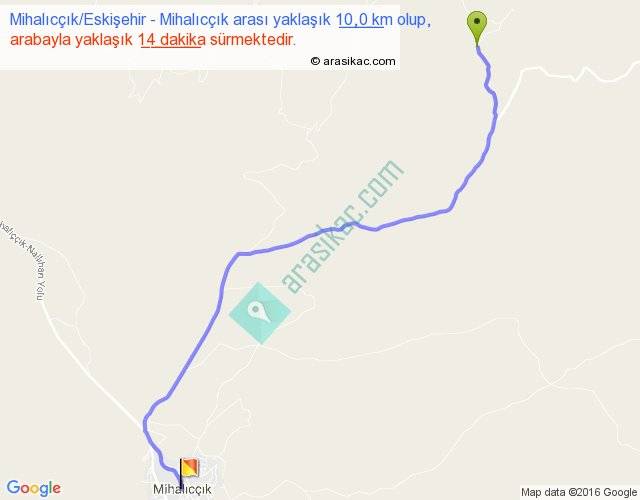 Mihalıcçık Eskişehir - Mihalıcçık arası yaklaşık olarak 90 km/h ile yukarıda belirtilen sürede olup, iki yerin kuş uçuşu uzaklığı (mesafesi) 8'dir. Yolculuk otobüsle 18 dakika sürmektedir.