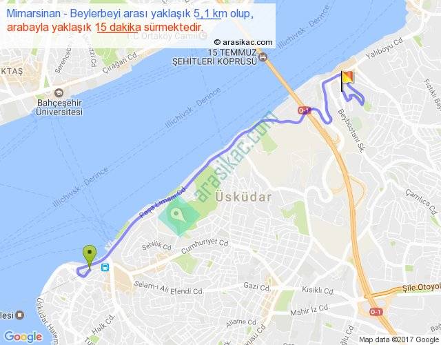 Eğer Mimarsinan Beylerbeyi arası ne kadar yakar (benzin/mazot) diyorsanız, kilometrede 3 ₺ yakan bir aracınız var ise 15, km'de 4 ₺ yakan bir aracınız var ise 20, km'de 5 ₺ yakan bir aracınız var ise 25 ile bu yolculuğu tamamlayabilirsiniz.