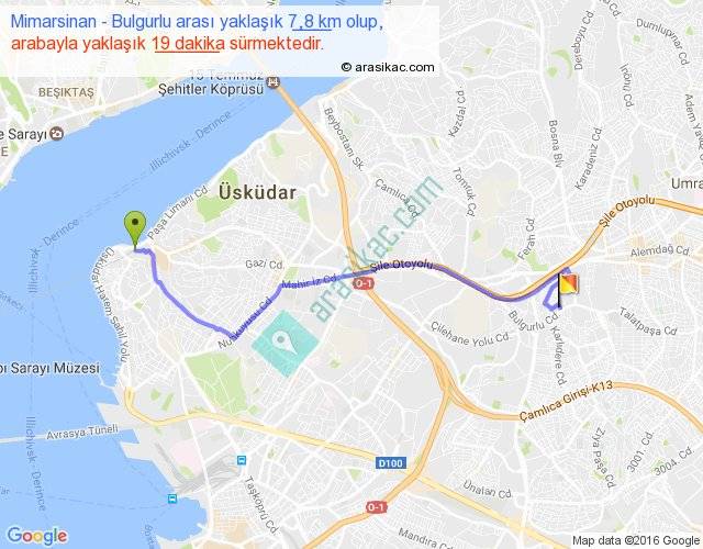 Mimarsinan - Bulgurlu arası yaklaşık olarak 90 km/h ile yukarıda belirtilen sürede olup, iki yerin kuş uçuşu uzaklığı (mesafesi) 6'dir. Yolculuk otobüsle 24 dakika sürmektedir.