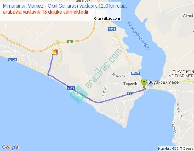 Eğer Mimarsinan Merkez Okul Cd. arası ne kadar yakar (benzin/mazot) diyorsanız, kilometrede 3 ₺ yakan bir aracınız var ise 36, km'de 4 ₺ yakan bir aracınız var ise 48, km'de 5 ₺ yakan bir aracınız var ise 60 ile bu yolculuğu tamamlayabilirsiniz.