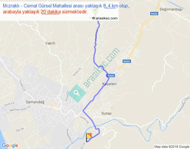 Mızraklı - Cemal Gürsel Mahallesi arası yaklaşık olarak 90 km/h ile yukarıda belirtilen sürede olup, iki yerin kuş uçuşu uzaklığı (mesafesi) 6'dir. Yolculuk otobüsle 26 dakika sürmektedir.