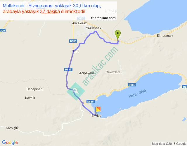 Mollakendi - Sivrice arası yaklaşık olarak 90 km/h ile yukarıda belirtilen sürede olup, iki yerin kuş uçuşu uzaklığı (mesafesi) 16'dir. Yolculuk otobüsle 48 dakika sürmektedir.