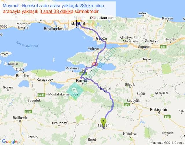 Eğer Moymul Bereketzade arası ne kadar yakar (benzin/mazot) diyorsanız, kilometrede 3 ₺ yakan bir aracınız var ise 855, km'de 4 ₺ yakan bir aracınız var ise 1140, km'de 5 ₺ yakan bir aracınız var ise 1425 ile bu yolculuğu tamamlayabilirsiniz.
