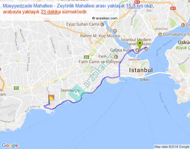 Eğer Müeyyedzade Mahallesi Zeytinlik Mahallesi arası ne kadar yakar (benzin/mazot) diyorsanız, kilometrede 3 ₺ yakan bir aracınız var ise 45, km'de 4 ₺ yakan bir aracınız var ise 60, km'de 5 ₺ yakan bir aracınız var ise 75 ile bu yolculuğu tamamlayabilirsiniz.