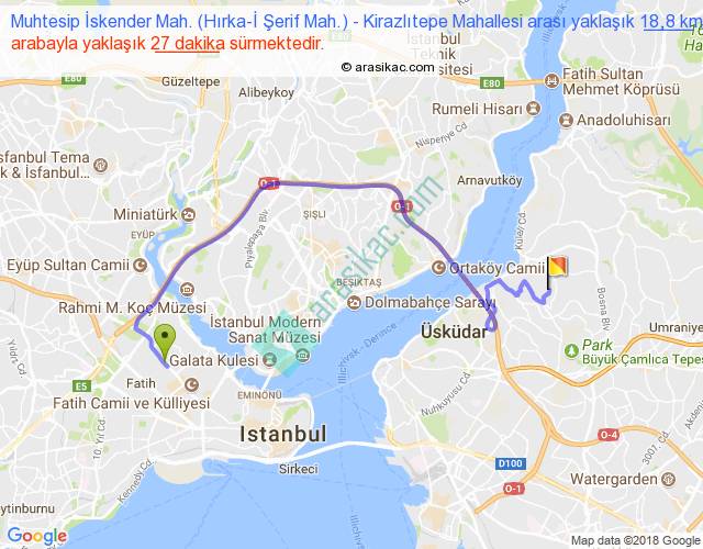 Muhtesip İskender Mah. (Hırka-İ Şerif Mah.) - Kirazlıtepe Mahallesi arası detaylı bilgi