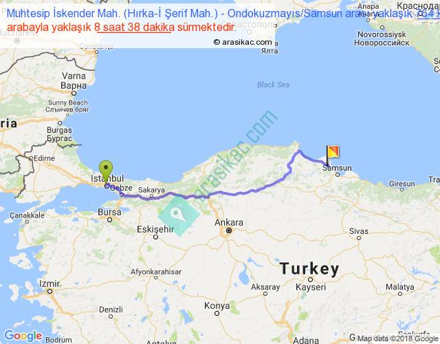 Muhtesip İskender Mah. (Hırka-İ Şerif Mah.) - Ondokuzmayıs Samsun arası detaylı bilgi