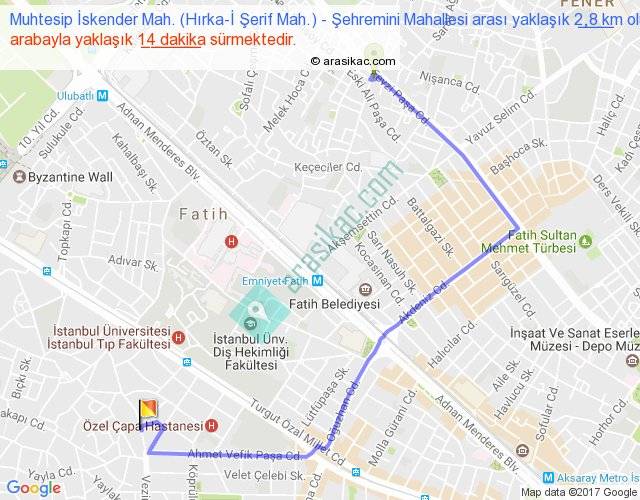 Muhtesip İskender Mah. (Hırka-İ Şerif Mah.) - Şehremini Mahallesi arası detaylı bilgi