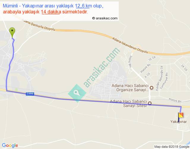 Müminli - Yakapınar arası yaklaşık olarak 90 km/h ile yukarıda belirtilen sürede olup, iki yerin kuş uçuşu uzaklığı (mesafesi) 10'dir. Yolculuk otobüsle 18 dakika sürmektedir.