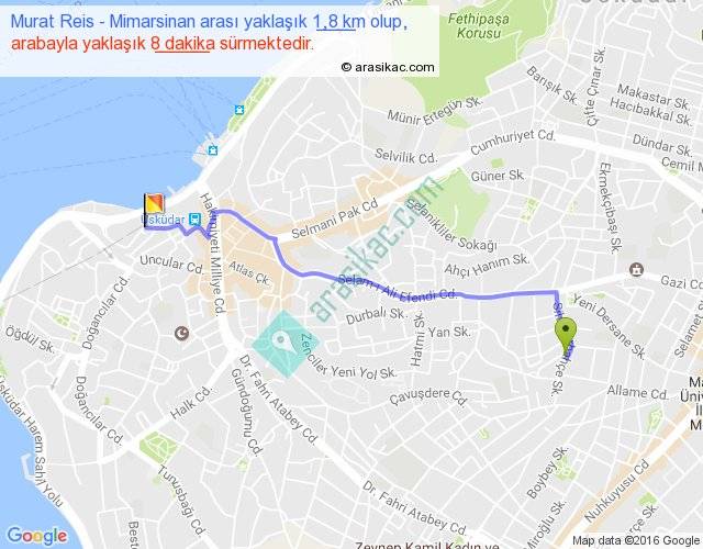 Murat Reis - Mimarsinan arası yaklaşık olarak 90 km/h ile yukarıda belirtilen sürede olup, iki yerin kuş uçuşu uzaklığı (mesafesi) 1'dir. Yolculuk otobüsle 10 dakika sürmektedir.