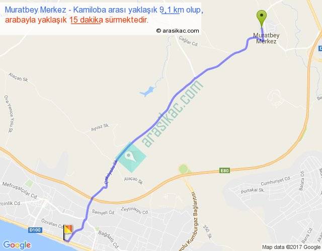 Muratbey Merkez - Kamiloba arası yaklaşık olarak 90 km/h ile yukarıda belirtilen sürede olup, iki yerin kuş uçuşu uzaklığı (mesafesi) 8'dir. Yolculuk otobüsle 19 dakika sürmektedir.
