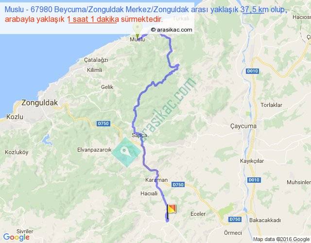 Muslu - 67980 Beycuma Zonguldak Merkez Zonguldak arası yaklaşık olarak 90 km/h ile yukarıda belirtilen sürede olup, iki yerin kuş uçuşu uzaklığı (mesafesi) 21'dir. Yolculuk otobüsle 1 saat 19 dakika sürmektedir.