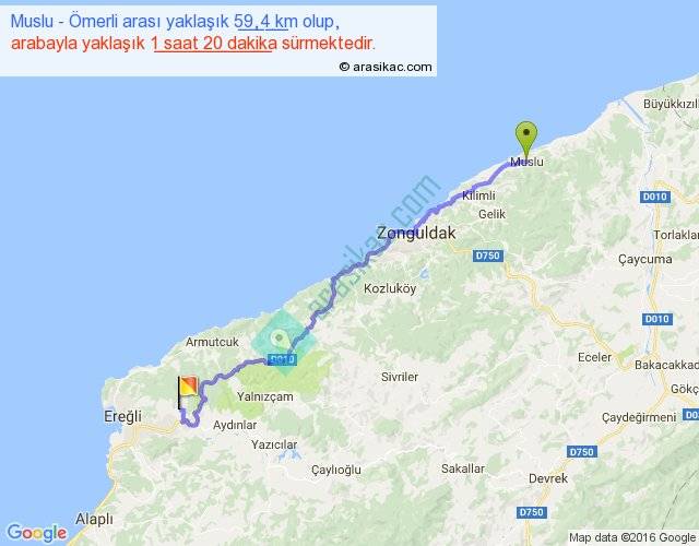 Muslu - Ömerli arası yaklaşık olarak 90 km/h ile yukarıda belirtilen sürede olup, iki yerin kuş uçuşu uzaklığı (mesafesi) 44'dir. Yolculuk otobüsle 1 saat 44 dakika sürmektedir.