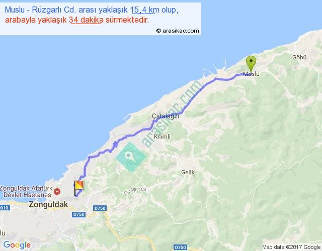 Muslu - Rüzgarlı Cd. arası yaklaşık olarak 90 km/h ile yukarıda belirtilen sürede olup, iki yerin kuş uçuşu uzaklığı (mesafesi) 12'dir. Yolculuk otobüsle 44 dakika sürmektedir.