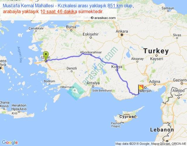 Eğer Mustafa Kemal Mahallesi Kızkalesi arası ne kadar yakar (benzin/mazot) diyorsanız, kilometrede 3 ₺ yakan bir aracınız var ise 2553, km'de 4 ₺ yakan bir aracınız var ise 3404, km'de 5 ₺ yakan bir aracınız var ise 4255 ile bu yolculuğu tamamlayabilirsiniz.