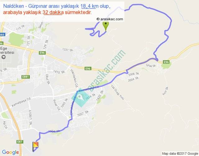 Naldöken - Gürpınar arası yaklaşık olarak 90 km/h ile yukarıda belirtilen sürede olup, iki yerin kuş uçuşu uzaklığı (mesafesi) 7'dir. Yolculuk otobüsle 41 dakika sürmektedir.