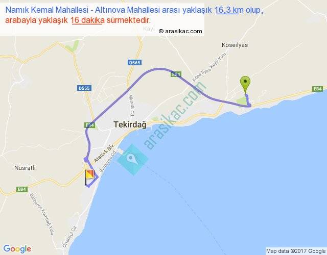 Eğer Namık Kemal Mahallesi Altınova Mahallesi arası ne kadar yakar (benzin/mazot) diyorsanız, kilometrede 3 ₺ yakan bir aracınız var ise 48, km'de 4 ₺ yakan bir aracınız var ise 64, km'de 5 ₺ yakan bir aracınız var ise 80 ile bu yolculuğu tamamlayabilirsiniz.