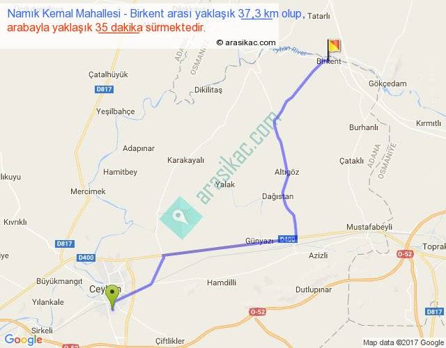Namık Kemal Mahallesi - Birkent arası yaklaşık olarak 90 km/h ile yukarıda belirtilen sürede olup, iki yerin kuş uçuşu uzaklığı (mesafesi) 29'dir. Yolculuk otobüsle 45 dakika sürmektedir.