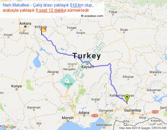 Narlı Mahallesi - Çalış arası yaklaşık olarak 90 km/h ile yukarıda belirtilen sürede olup, iki yerin kuş uçuşu uzaklığı (mesafesi) 399'dir. Eğer belirtilen yerler arasında uçak seferi var ise bu süre uçakla 36 dakika'ya kadar düşebilir. Yolculuk otobüsle 8 saat 3 dakika sürmektedir.